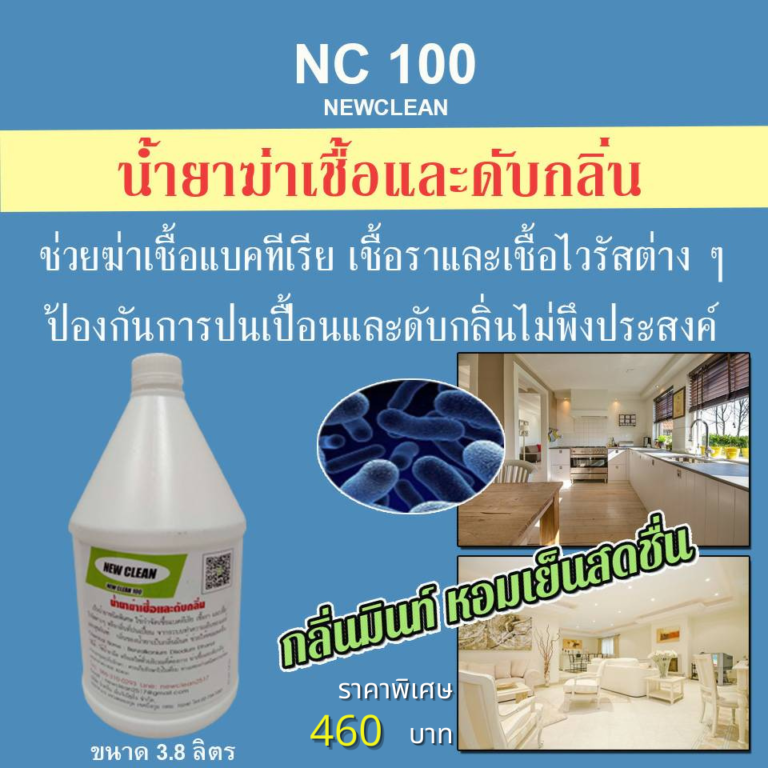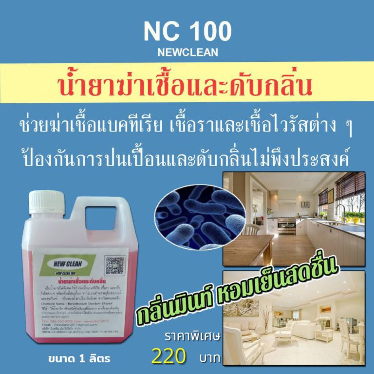 New – Clean 100 สามารถกำจัดเชื้อต่างๆ ได้อย่างมีประสิทธิภาพ 100 เปอร์เซ็นต์ นอกจากการกำจัดเชื้อต่างๆ ดังกล่าวแล้ว New – Clean 100 ยังมีคุณสมบัติพิเศษอีกประการหนึ่ง คือ การดับกลิ่นอับ ที่เกิดจากการหมักของเชื้อรา การหมักของตะใคร่ในระบบทำความเย็น การหมักของตะกรัน และหินปูน ในโถปัสสาวะ รวมทั้งการหมักประเภทอื่นๆ ของเชื้อ นอกจากที่กล่าวแล้ว ซึ่งการหมักเหล่านี้ ส่งผลให้เกิดกลิ่นอับ และกลิ่นไม่พึงประสงค์ New – Clean 100 สามารถดับกลิ่นอับ และกลิ่นไม่พึงประสงค์ดังกล่าวได้ New – Clean 100 จึงเป็นน้ำยาอเนกประสงค์ ซึ่งสามารถกำจัดได้ทั้ง กลิ่นอับ เชื้อต่างๆ อย่างมีประสิทธิภาพ